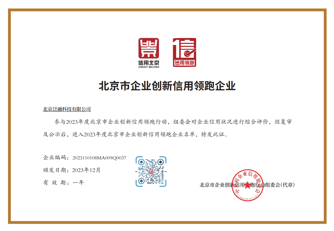 顺发配资和泛融科技获评2023年度北京市企业创新信用领跑企业